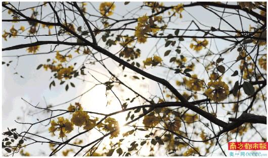 3月13日,深圳改革开放纪念馆旁的黄花风铃木盛开。 南都记者 霍健斌 摄