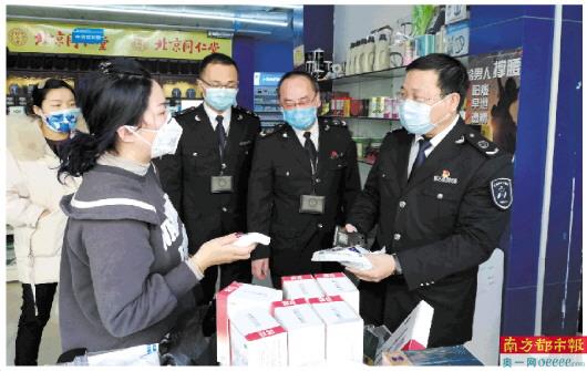 执法人员检查药品,要求经营者拓宽渠道,保障医用紧缺物品的供应,同时告诫经营者应做好明码标价,严禁哄抬物价,囤货居奇。