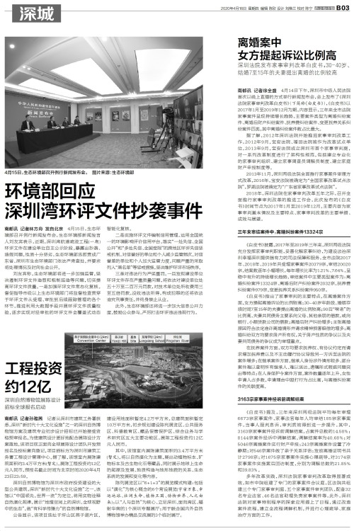 南都讯 记者徐全盛 4月14日下午,深圳市中级人民法院首次以线上直播的方式举行新闻发布会,会上发布了《深圳法院家事审判改革白皮书》(下简称《白皮书》),《白皮书》以2017年1月至2019年12月为期