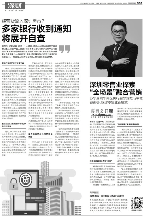 南都讯 记者卢亮 受疫情的影响,深圳零售行业探索新的模式,全场景融合渐入佳境,跟市民购物息息相关的近场服务也有了更多创新。日前,苏宁易购华南区执行副总裁兼深圳大区总经理戴冯军做客南都“深圳疫后应对在线