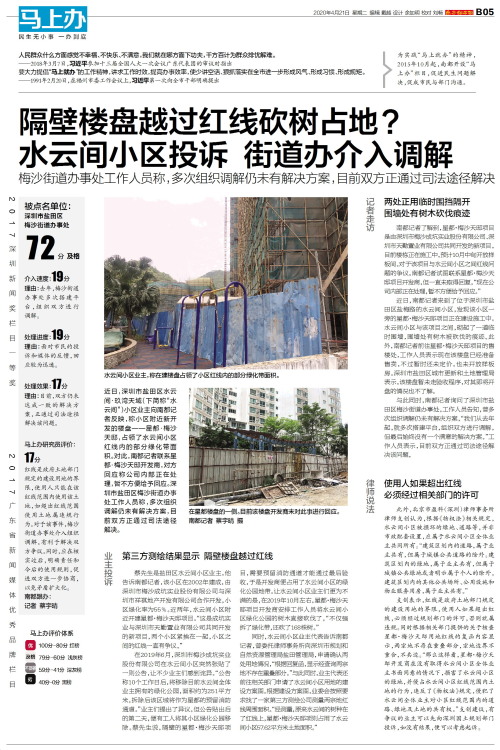 隔壁楼盘越过红线砍树占地?水云间小区投诉 街道办介入调解