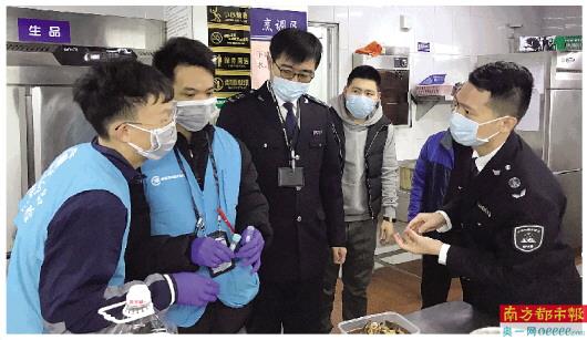 光明局执法人员保障居家隔离人员定点供餐单位食品安全。