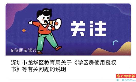 5月15日,龙华区教育局就此事答复南都,已于5月13日通过“龙华教育”微信公众号发布关于《学区房使用授权书》等有关问题的说明,明确了提交时间延长至2020年6月14日学校初审资料结束前。但家长务必先报名,在初审阶段联系报名的学校补交《学区房使用授权书》及产权证明材料。