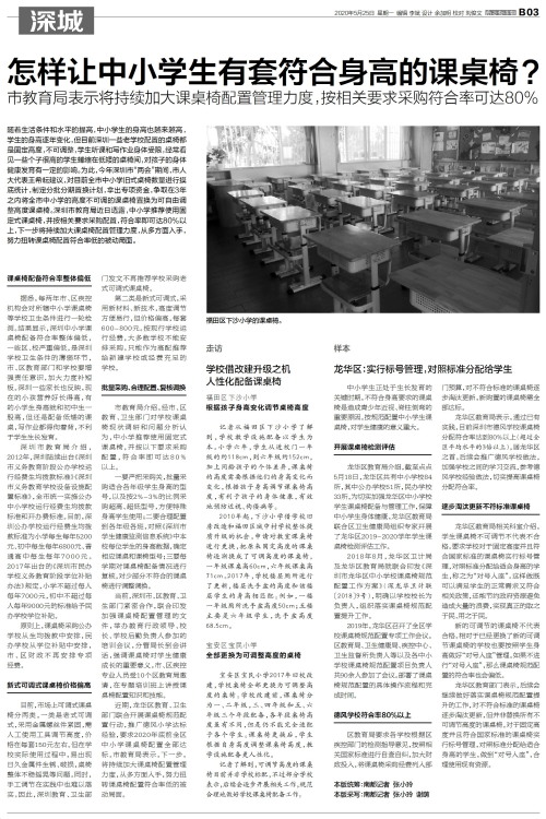 随着生活条件和水平的提高,中小学生的身高也越来越高,学生的身高逐年变化,但目前深圳一些老学校配置的桌椅都是固定高度,不可调整,学生听课和写作业身体受限,经常看见一些个子很高的学生蜷缩在低矮的桌椅间,对