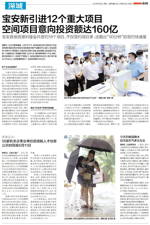宝安新引进12个重大项目 空间项目意向投资额达160亿