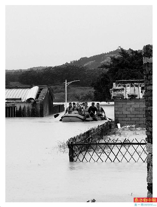 ↓ 深汕合作区驻训部队驾橡皮艇转移低洼易涝区群众。 市三防办供图