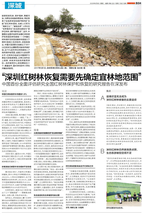 “深圳红树林恢复需要先确定宜林地范围”