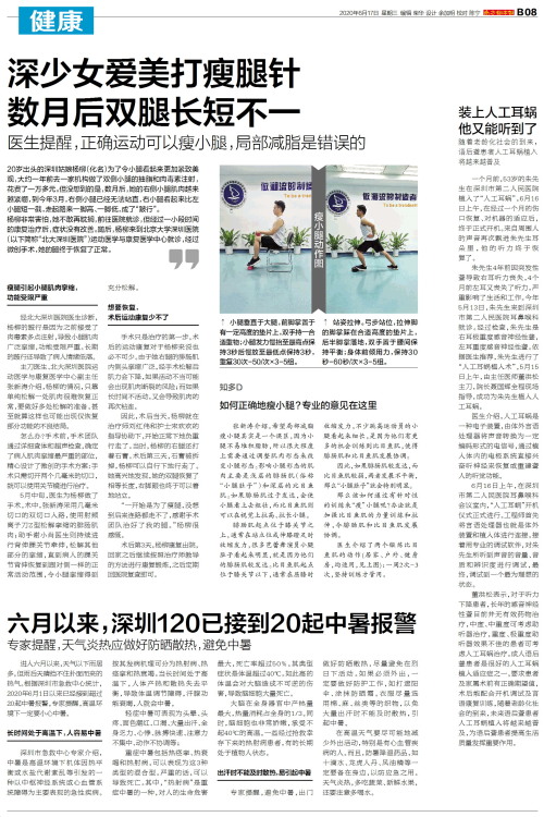 深少女爱美打瘦腿针 数月后双腿长短不一