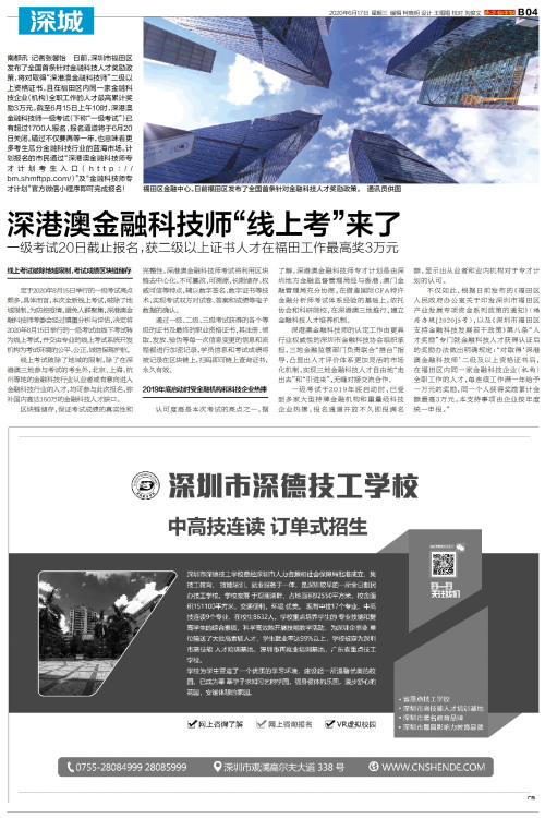 南都讯 记者张馨怡 日前,深圳市福田区发布了全国首条针对金融科技人才奖励政策,将对取得“深港澳金融科技师”二级以上资格证书,且在福田区内同一家金融科技企业(机构)全职工作的人才最高累计奖励3万元。截至