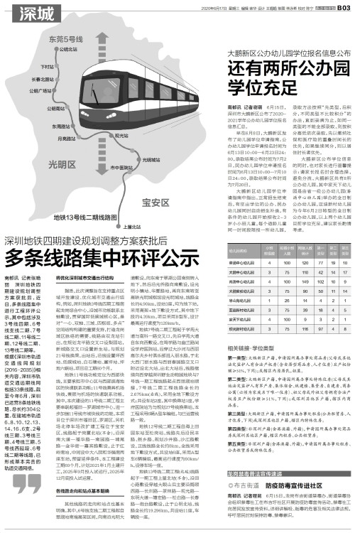 南都讯 记者张艳丽 深圳地铁四期建设规划调整方案获批后,近日,多条线路集中进行工程环评公示。其中包括涉及3号线四期、6号线支线二期、7号线二期、11号线二期、12号线二期、13号线二期等。根据《深圳市
