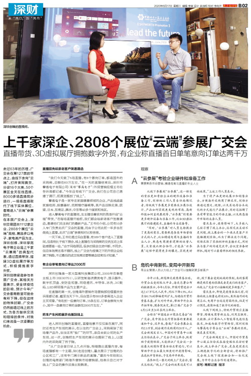 走过63年的历程,广交会在第127届的节点上,由线下走向“云端”。打开官网首页,分设16个大类、50个展区全天在线直播,8000多场直播同步进行,一场场直播取代了线下实体展位,客商进入“云端”参展时代