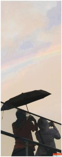 昨日,深圳笋岗西路附近,市民用手机拍摄雨后的彩虹。南都记者刘有志 摄