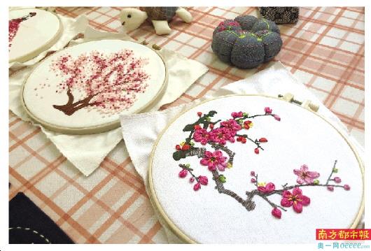 ←←活动现场的陈列展览专区,摆放着“布衣女匠”制作的精美手工艺品。