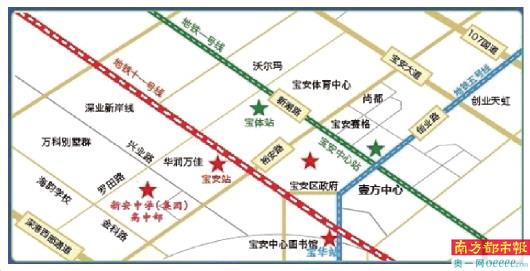 优越的区域位置。新安中学(集团)高中部位于宝安中心区核心地带,毗邻区委区政府、区体育馆、图书馆、滨海公园、壹方中心,周边环境优越,交通便捷,地铁1号线、5号线、11号线均可快速直达。