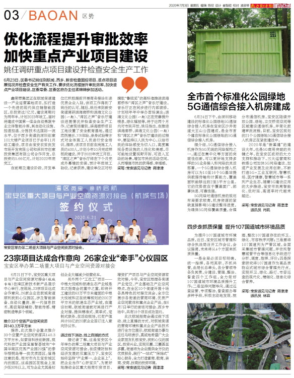 6月23日,区委书记姚任到航城、西乡、新安检查固投项目、重点项目进展情况并检查安全生产有关工作,要求优化流程提升审批效率,加快重点产业项目建设。区委常委、区委区府办主任孟锦锦参加活动。鑫荣懋集团正在航