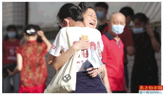 深圳福田中学,2020高考开考前,老师与学生一一拥抱。