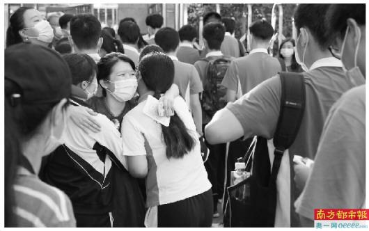 7月7日,2020年全国高考拉开序幕,深圳中学考点,开考前考生和家长拥抱。