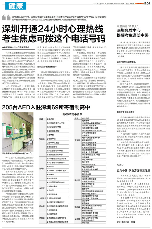 高考之后,迎来中考。为做好考生的心理援助工作,深圳市精神卫生中心开通全市“三考”学生24小时心理热线平台(热线号码:4009959959),为考生提供情绪疏导、心理支持及危机干预等服务。由专家提供一对