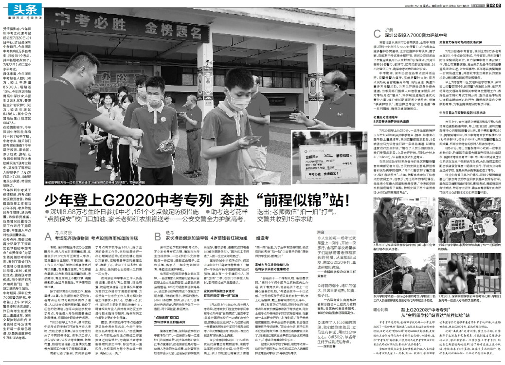 在疫情影响下,今年深圳中考和往年有何不同?初中学校、中考考点、相关部门都有哪些准备?今年送考教师、家长团,除了红衣、旗袍,还有哪些新鲜的送考助威玩法?送考过程中,又发生了哪些动人的故事? 7月20日早上7:30,南都记者兵分多路,带您实地探访。