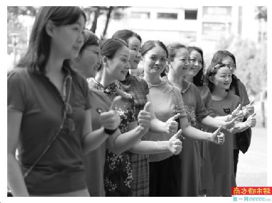7月20日上午7点40分,考生进入考场后,送考家长们在宝安中学初中部考点外开启“自拍模式”。宝安中学(集团)外国语学校初三(3)班的家长介绍,家委会自发组织了十几位家长统一穿着旗袍到宝安中学初中部考点送考。“今天穿旗袍送考,明天统一穿红衣服送考”家长黄女士说道。