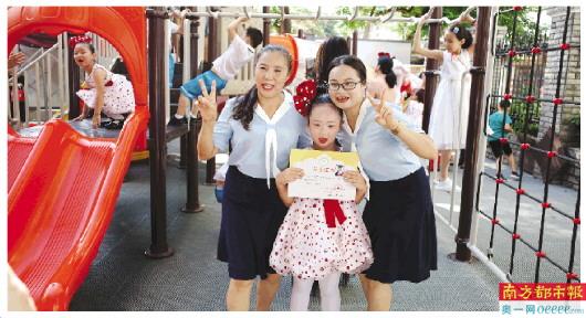 7月24日,深圳南头城幼儿园,园方为大班小朋友举办毕业典礼。该园是一所民办普惠园,园长称非常希望能转型为公办园。 南都记者 顾威 摄