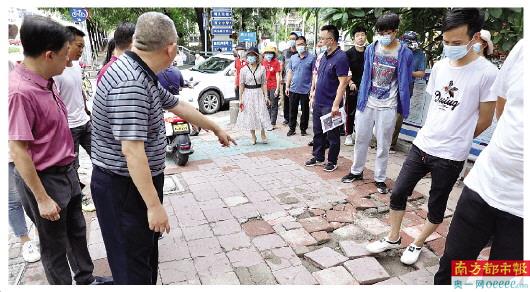 在步行街155号门口,调研组看到路面坑洼不平未修复,施工单位当即表示8月底前实现硬件修复完工。步行街158号小广场旁边的施工场地未进行规范围挡,未张贴项目公示牌;步行街90、134号工程物料乱堆放;步行街126号门口的施工场地未张贴项目公示牌;步行街口施工场地的施工告示牌需要更新,并增加投诉电话……走访调研过程中,调研组一面发现问题,一面让相关责任单位现场提出解决方案,倒排工期,同时保障市民对施工情况的知情权。