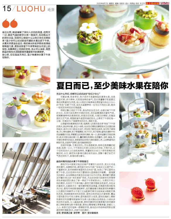 连日大雨,略微缓解了深圳入伏后的高温,但雨天一过,眼看气温的数字又将一路飙升,在动辄出汗的深圳炎夏,到底可以做些什么让自己快乐清爽起来?至少你可以试试那些可爱的水果主题下午茶。水果天然更适合夏日,有时