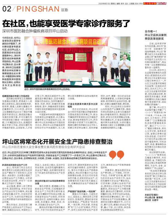 坪山区将常态化开展安全生产隐患排查整治