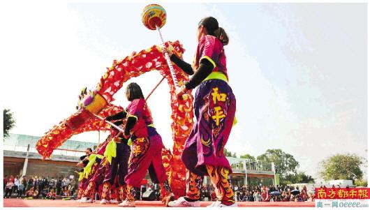 “以前,居民业余生活比较单一,经常聚在一起打麻将,社区党委就想办法,引导妇女把打麻将变成舞龙头。”和平社区党委委员何剑平说。2006年,和平社区党委筹建了和平社区女子舞龙队。十几年来,舞龙队由10多人到现在100多人,从一支队伍变成多支队伍,在辖区学校内成立舞龙基地,组建教职工舞龙队。舞龙队先后荣获山东临沂“中华龙狮”全国赛三等奖、广东省13届“体育彩票杯”龙狮大赛“规定套路”金奖和“自选套路”银奖、广东省珠海市女子舞龙比赛规定自选双冠军等多项殊荣,成为福海街道一张响亮的特色名片。“现在一提到和平,大家就想到舞龙队,不仅是文化名片,还增强了居民之间的凝聚力,改善社会风气,现在居民的精神面貌好多了!”提起和平社区女子舞龙队如今的发展,何剑平感到十分自豪。