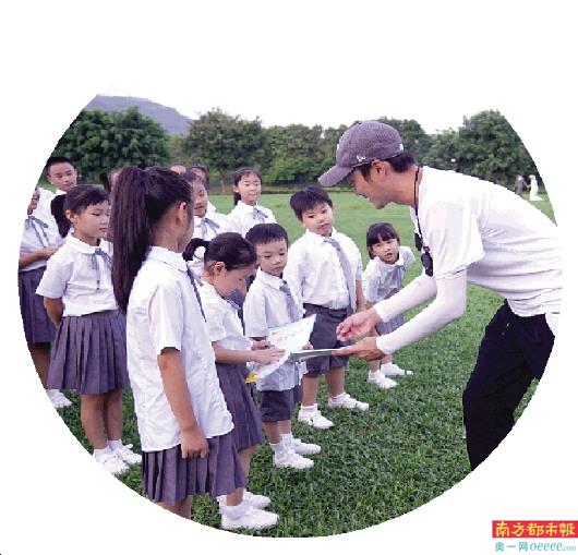 ↑←参加南都童声合唱团的小朋友在大沙河公园进行最后一次拍摄,导演为小朋友们发结业证书。 南都记者 霍健斌 摄