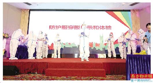 比赛特别设置了游戏互动环节,图为防护服的穿脱体验。