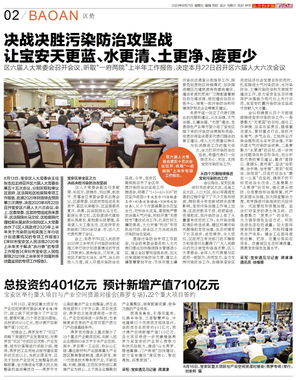 决战决胜污染防治攻坚战让宝安天更蓝、水更清、土更净、废更少