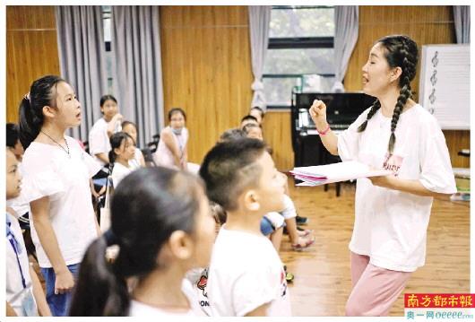 8月3日,参加南都童声合唱团的小朋友在深圳高级中学初中部进行排练。