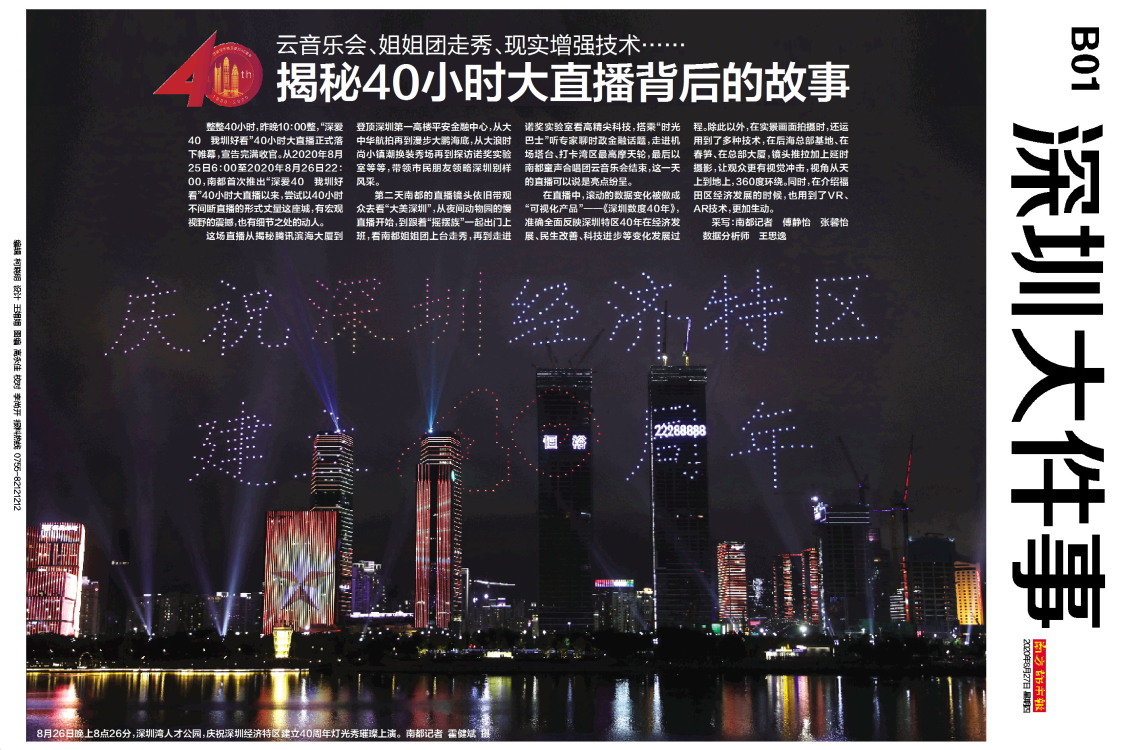 整整40小时,昨晚10:00整,“深爱40 我圳好看”40小时大直播正式落下帷幕,宣告完满收官。从2020年8月25日6:00至2020年8月26日22:00,南都首次推出“深爱40 我圳好看”40小