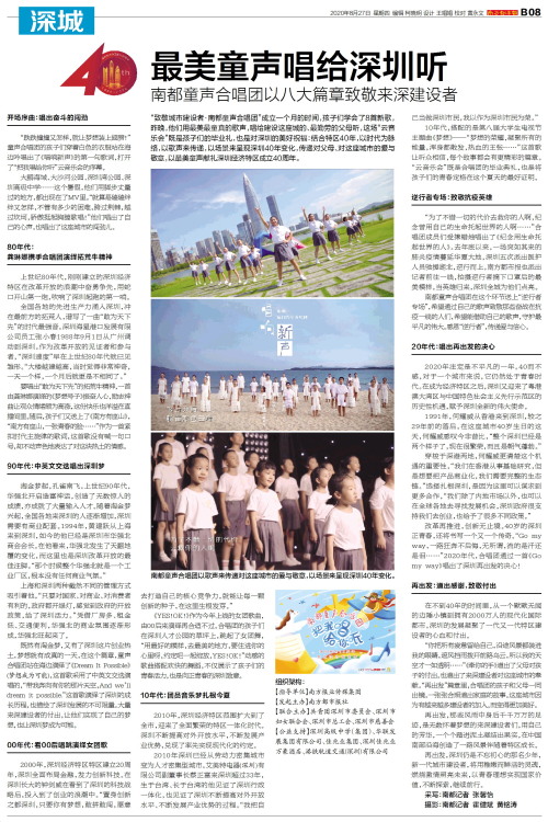 “致敬城市建设者·南都童声合唱团”成立一个月的时间,孩子们学会了8首新歌,昨晚,他们用最美最童真的歌声,唱给建设这座城的、最勤劳的父母听,这场“云音乐会”既是孩子们的毕业礼,也是对深圳的美好祝福:结合
