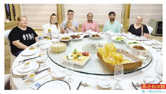 探访夜间经济,美食先行。想要体味一座城市,就从最传统的当地美食开始。在东门老字号传统粤菜酒楼唐宫,烧鹅、虾饺一个个耳熟能详的菜品,等待他们的品尝。“我爱深圳美食,平时和家人比较偏好较清淡、味道鲜美的菜,这家粤菜馆挺符合我们的口味。我来深圳十多年了,现在觉得深圳才是我的家!”在罗湖任职外教的Andy表示,平时也会常来东门“下馆子”,常常去东北菜馆和粤菜馆尝试地道特色菜。