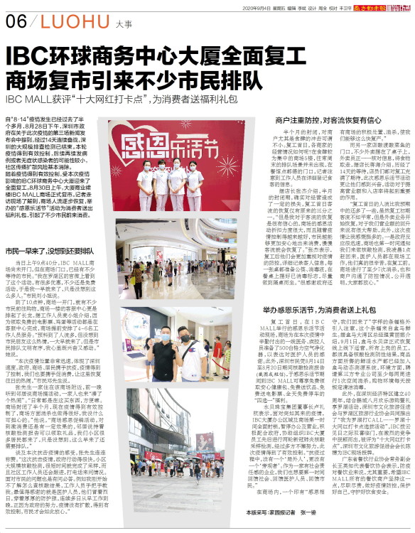 IBC环球商务中心大厦全面复工 商场复市引来不少市民排队