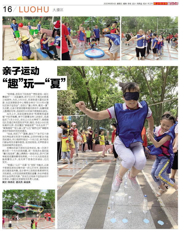 “我希望,在阳光下玩泡泡”“想和爸妈一起比赛通关”……说起暑假,孩子们少不了提及的就是父母陪伴。为此,8月29日,东湖街道大望社区党委、社区党群服务中心等联合举办“2020年大望社区亲子运动会”。活动
