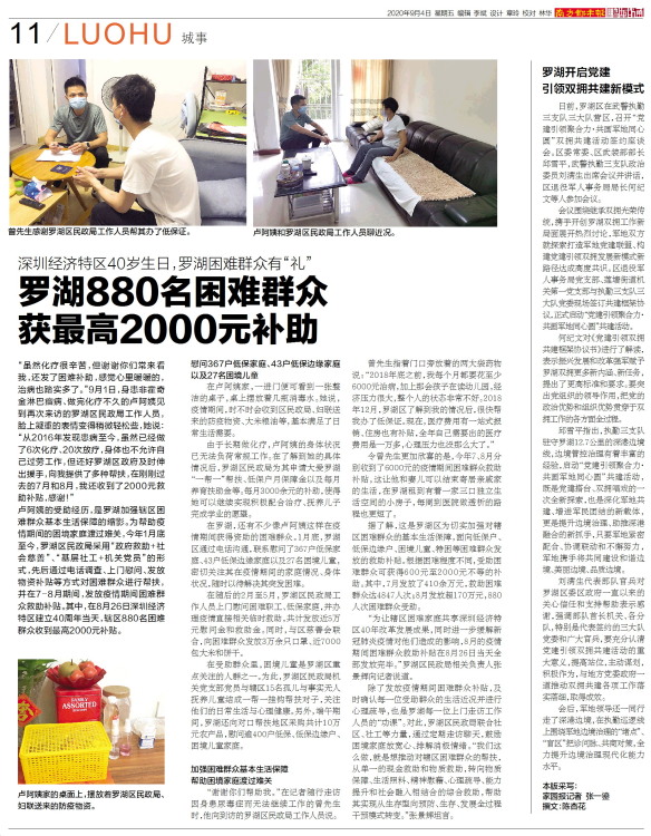“虽然化疗很辛苦,但谢谢你们常来看我,还发了困难补助,感觉心里暖暖的,治病也踏实多了。”9月1日,身患非霍奇金淋巴瘤病、做完化疗不久的卢阿姨见到再次来访的罗湖区民政局工作人员,脸上凝重的表情变得稍微轻