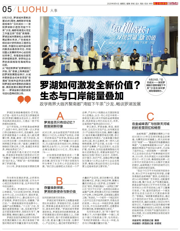 8月29日,罗湖城市更新改革试点5周年。南都联手粤海置地举办“见圳成长——发现罗湖新价值暨湾姐下午茶”沙龙。南都粤港澳大湾区工作室主持“湾姐”黄海珊、罗湖区城市更新和土地整备局副局长朱洁、广东省城乡规
