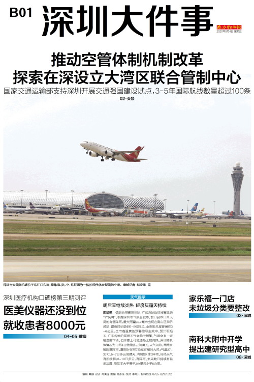 推动空管体制机制改革 探索在深设立大湾区联合管制中心