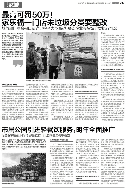 南都讯 记者张小玲 深圳一超市未按规定配备垃圾分类设施,也没对垃圾进行分类投放被责令整改,深圳一餐饮企业也因餐厨垃圾未按规定投放并配备规范垃圾投放设施被责令整改。深圳市城管和综合执法局昨日开始第三天的
