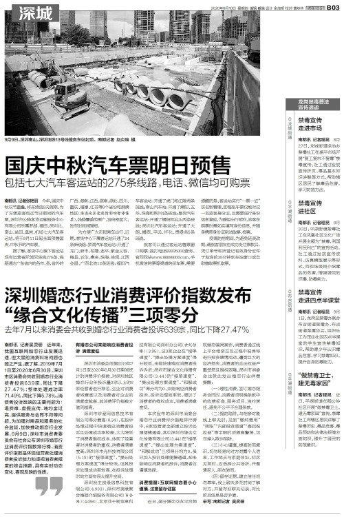 南都讯 记者张艳丽 今年,国庆中秋双节重叠,将连续放8天假期。为了方便旅客购买节日期间的汽车票,深圳市公路客货运输服务中心有限公司所属罗湖、福田、深圳北、南山、盐田、皇岗、机场七大汽车客运站,将于9月