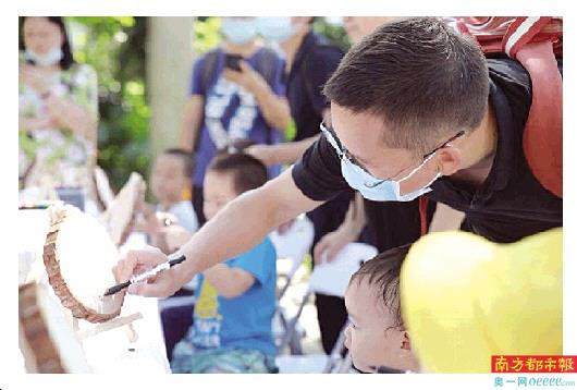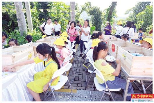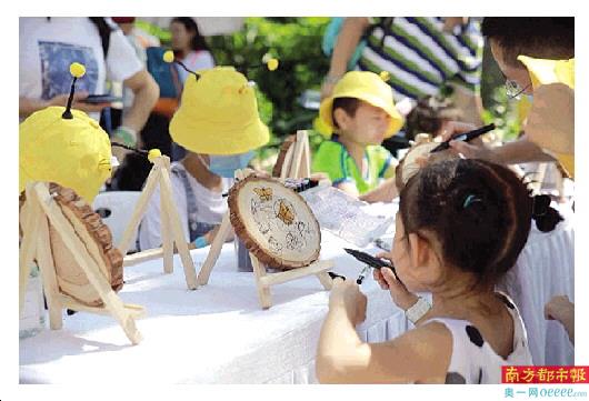 “原来蜜蜂不仅仅是采花酿蜜,还与人类生活密切相关!希望爸爸妈妈和我一起画出来的图画,能吸引真的蜜蜂来入住!”在绘画活动区,亲子家庭分工协作,在陶瓷罐、圆木片、蜂箱上画画,不少孩子一笔一画地描绘出形状不一的“蜜蜂之家”。