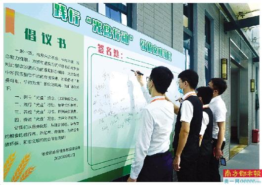 据悉,宝安区政务服务数据管理局结合纪律教育学习月活动,通过强化作风建设,号召全体工作人员带头践行“光盘行动”,当好先锋、做好表率,让杜绝浪费、文明用餐的观念潜移默化,让艰苦奋斗、勤俭节约的优良传统深入人心。记者在该单位食堂门口看到,“光盘行动”倡议宣传板上密密麻麻写满姓名,党员干部职工和窗口工作人员带头在展板上签名承诺,自觉抵制“舌尖上的浪费”。