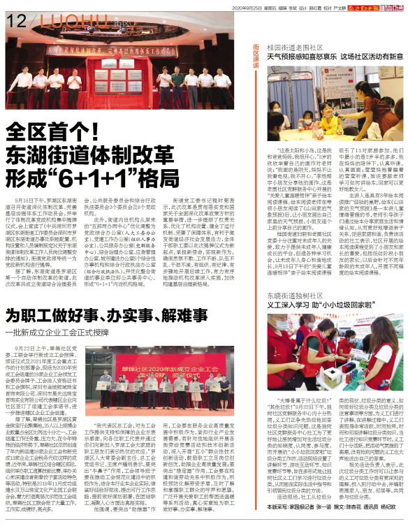 据了解,东湖街道是罗湖区第一个启动体制改革的街道,此次改革共成立街道综合治理委员会、公共服务委员会和综合行政执法委员会3个委员会及8个党政机构。