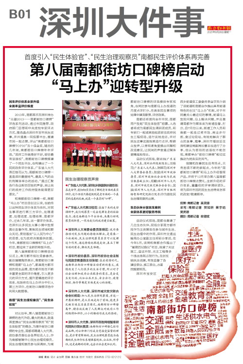 民生评价体系全新升级全面丰富评价维度2013年,南都首次在深圳举办“众望2013——南都街坊口碑榜”评选系列活动。通过市民推荐、政府部门自荐和中央党校专家评点方式,推选盘点深圳市百件民生实事,并开通奥
