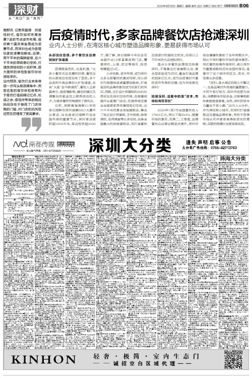 后疫情时代,多家品牌餐饮店抢滩深圳