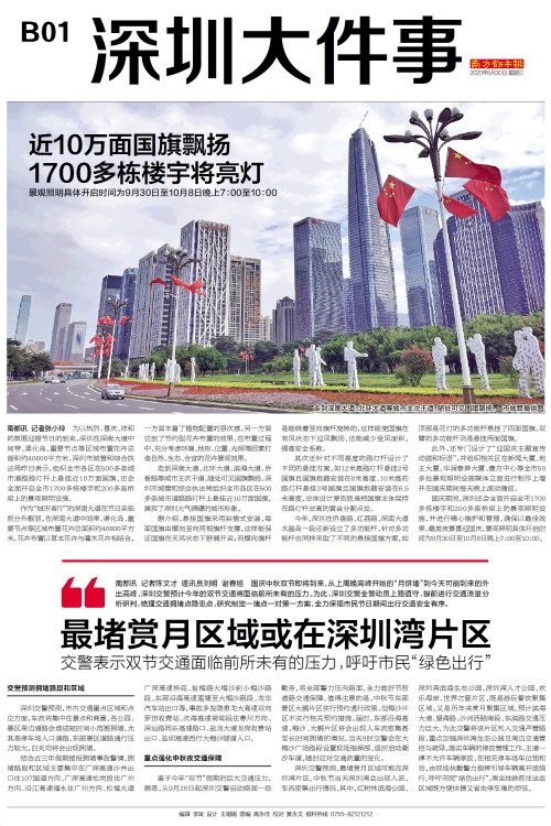 南都讯 记者陈文才 通讯员刘明 谢春旭 国庆中秋双节即将到来,从上周晚高峰开始的“月饼堵”到今天可能到来的外出高峰,深圳交警预计今年的双节交通将面临前所未有的压力。为此,深圳交警全警动员上路值守,提前