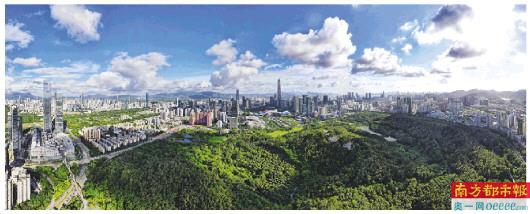 2020年7月,蓝天下的深圳莲花山公园和福田中心区。 南都记者 赵炎雄 摄